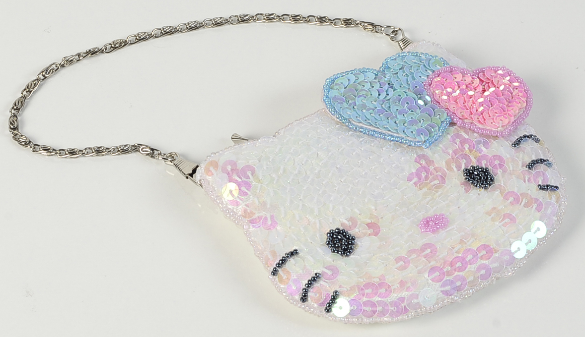 Em forma do rosto da Hello Kitty, este porta-moedas apresenta uma base branca decorada com lantejoulas brilhantes em tons suaves e dois corações coloridos. Pertencente à coleção Mosaic, é uma peça leve, resistente e cheia de charme, perfeita para quem gosta de acessórios que combinam funcionalidade e um toque de fantasia.
