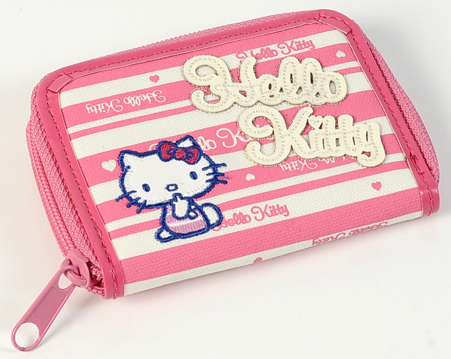 Apresentando riscas em tons de rosa e branco e a imagem da adorável Hello Kitty, este porta-moedas pertence à coleção Stripes. Leve e resistente, combina um design alegre com a qualidade necessária para o uso diário, sendo a escolha ideal para fãs da personagem que procuram um toque de cor no seu dia a dia.