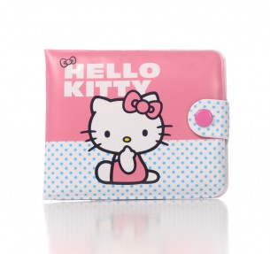 Carteira em Vinil Rosa Bolinhas Hello Kitty, 10x8 cm