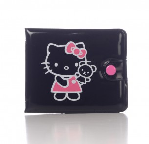 Carteira em Vinil Preta Urso Hello Kitty, 10x8 cm