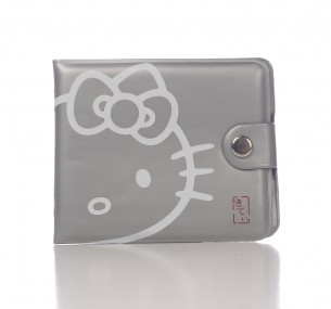 Carteira em Vinil Cinza Cara Hello Kitty, 10x8 cm