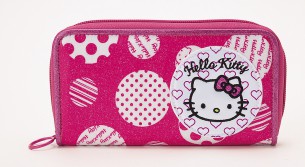 Carteira Dot Hello Kitty, 10 x 20 cm - Rosa