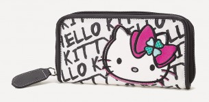 A carteira Logo Hello Kitty combina um estilo urbano com o charme da personagem mais adorada da Sanrio. O design em branco com o logótipo "HELLO KITTY" repetido em letras pretas dá-lhe um visual moderno e arrojado, enquanto o rosto da Hello Kitty com um laço rosa e verde em destaque acrescenta um toque delicado e divertido.
