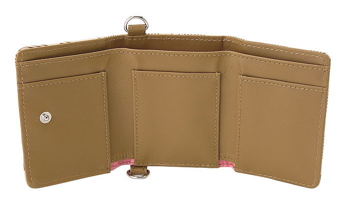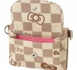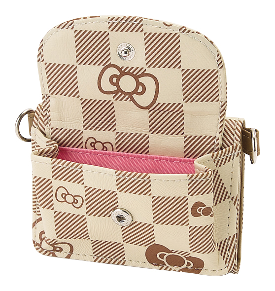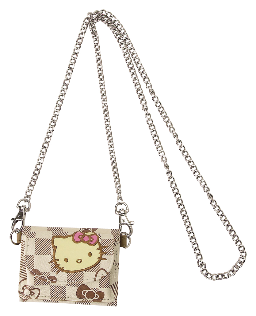 Carteira com Corrente Grid Hello Kitty, 10 x 8 cm - Castanho e Bege