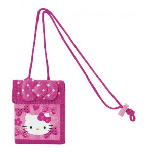 Carteira a Tiracolo Pink Ribbon Hello Kitty, 10 x 12 cm, Poliéster - Rosa