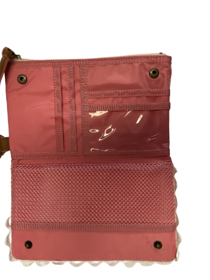 Com dimensões de 18 x 11 cm, oferece um interior espaçoso com vários compartimentos para notas, cartões e documentos, além de um bolso com fecho de pressão. Inclui também uma alça de pulso, prática para transportar em segurança no dia-a-dia. Um acessório funcional e encantador, pensado para quem gosta de organização sem abdicar do estilo.