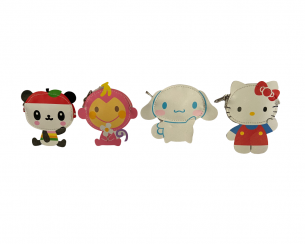 Disponível em várias opções adoráveis — Cinnamoroll, Hello Kitty, Monkichi e Pandapple — este porta-moedas permite escolher a personagem favorita. Fabricado em material suave e colorido, é ideal para quem gosta de acessórios cheios de personalidade e alegria. Um companheiro perfeito para fãs da Hello Kitty e dos seus amigos!
