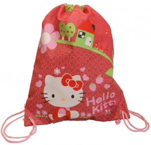 O saco de ginástica House Hello Kitty é ideal para quem procura praticidade e um toque de ternura no seu dia a dia. Com um design encantador em tons de vermelho, é decorado com a adorável Hello Kitty num cenário de flores e natureza, transmitindo alegria e suavidade.