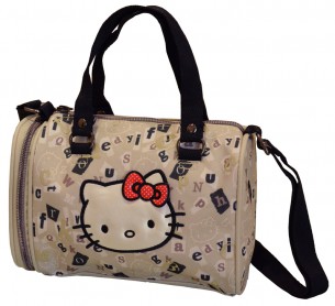 Bolsa Tiracolo Letters Hello Kitty, 21 x 14 cm - Preto e Bege
