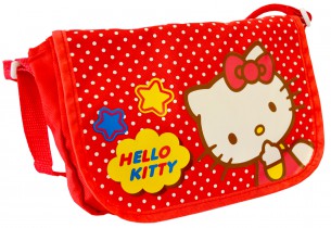 O saco de ombro Hello Kitty é a escolha ideal para quem procura um acessório prático e cheio de cor. De fundo vermelho vibrante, com padrão de bolinhas brancas, é decorado com a imagem alegre da Hello Kitty acompanhada de estrelas coloridas, conferindo-lhe um visual divertido e encantador.