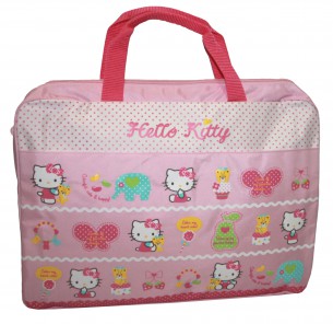 O saco de ombro Hello Kitty Stitch é uma opção encantadora e prática para as mais pequenas levarem tudo o que precisam com estilo. Com um design alegre em tons de rosa, apresenta várias ilustrações da Hello Kitty rodeada de corações, animais e padrões coloridos, que trazem um ar divertido e delicado ao acessório.