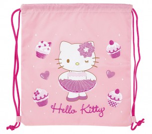 O saco de ginástica Pink Tutu Hello Kitty é a escolha perfeita para quem procura um acessório prático e cheio de charme. De cor rosa suave, é decorado com a adorável Hello Kitty vestida de bailarina, rodeada de pequenos cupcakes e corações, criando um visual doce e encantador.