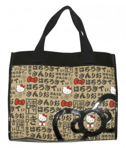 Bolsa de Ombro Japanese Hello Kitty, 42 x 33.5 cm - Preto e Castanho