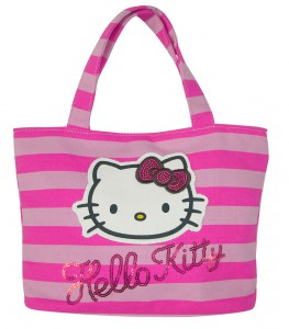 O saco de mão Spangle Hello Kitty é perfeito para quem procura um acessório prático e cheio de brilho. Em tons de rosa com riscas horizontais, é decorado com a imagem da Hello Kitty em destaque e detalhes brilhantes na inscrição "Hello Kitty", conferindo-lhe um visual jovem e divertido.