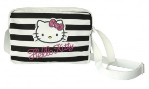 A bolsa de ombro Hello Kitty Spangle é perfeita para quem procura um acessório prático e cheio de personalidade. Com um padrão às riscas preto e branco e o icónico rosto da Hello Kitty em destaque, esta mala conjuga estilo com funcionalidade. O pormenor do nome “Hello Kitty” com lantejoulas adiciona um toque brilhante e divertido, tornando-a ideal para os mais pequenos ou para fãs da personagem.