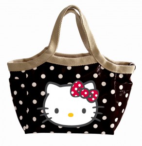 Saco de Mão Face Dots Hello Kitty, 30 x 20 cm - Preto