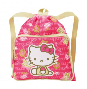 Saco de Ginástica Brisk Hello Kitty, 30 x 14 cm - Rosa e Bege