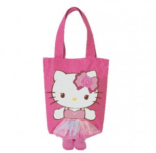 A bolsa de mão Hello Kitty Ballerina é o acessório ideal para os pequenos fãs da personagem que adoram dança e cor. Com um encantador desenho da Hello Kitty vestida de bailarina, esta bolsa destaca-se pelo tutu em tecido aplicado na parte inferior, tornando-a ainda mais divertida e especial.