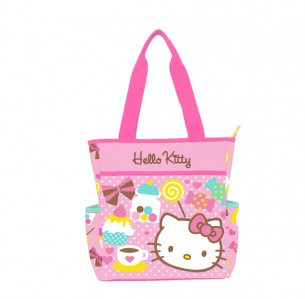 Saco de Ombro Teatime Hello Kitty, 33 x 30 cm, Poliéster - Rosa