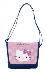 Bolsa Tiracolo Dotted Sea Hello Kitty, 15 x 22 cm, Poliéster - Rosa e Azul
