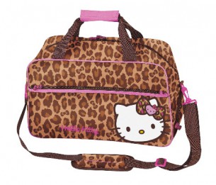 Saco para Fim de Semana Leopardo Hello Kitty, 46 x 28 cm, Poliéster - Castanho e Bege