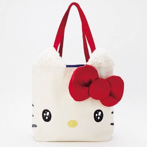 Saco de Ombro Fluffy Hello Kitty, 42 x 31 cm, Algodão, Branco e Vermelho