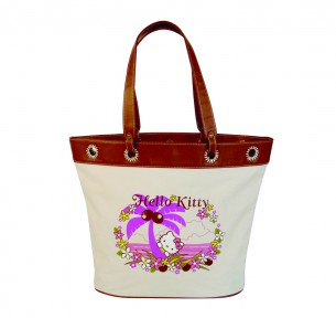 Bolsa de Mão Palm Hello Kitty, 35 x 44 cm - Bege e Castanho