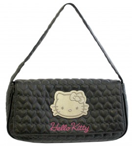 Bolsa de Ombro Heart Quilt Hello Kitty, 32.5 x 16 cm - Preto