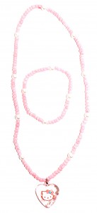 Conjunto Colar e Pulseira Hello Kitty - Rosa/Branco