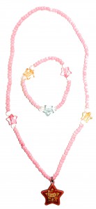 Conjunto Colar e Pulseira Hello Kitty - Rosa c/ Estrelas