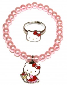 Conjunto de Pulseira e Anel Hello Kitty - Rosa Sentada