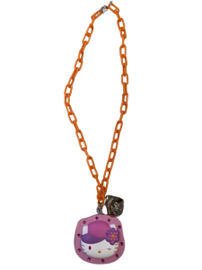 O colar Hat Hello Kitty é um acessório divertido e original, ideal para os fãs da icónica personagem. O pendente rosa apresenta a Hello Kitty com um adorável chapéu decorado, criando um design encantador e cheio de personalidade. A corrente laranja adiciona um toque vibrante e moderno, tornando este colar uma peça única e especial.