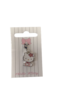 Com 6.5 x 6.5 cm, este pendente é compacto e fácil de fixar, garantindo conforto e versatilidade. O fecho seguro permite uma fixação firme, tornando-o um acessório indispensável para qualquer fã da Hello Kitty.