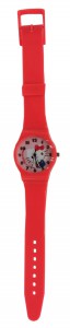 Bracelete em silicone resistente de cor vermelha, o relógio apresenta uma presilha e uma fivela em plástico da mesma cor, garantindo um ajuste seguro e confortável ao pulso. Com dimensões de 23 x 3 cm, é leve e ergonómico, ideal para o uso diário.