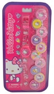 O relógio Multi Designs Cosmetic Hello Kitty é o acessório perfeito para quem gosta de variar o seu estilo. Com vários mostradores intercambiáveis, todos com ilustrações adoráveis da Hello Kitty, este relógio permite criar combinações diferentes para cada dia ou ocasião.
