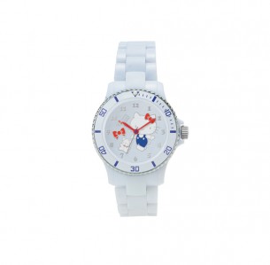 O relógio analógico Travel Hello Kitty é a combinação perfeita de elegância e diversão para os fãs da icónica personagem. Com um mostrador branco decorado com a imagem da Hello Kitty em tons prateados e azuis, este relógio destaca-se pelo seu design delicado e moderno, ideal para quem aprecia acessórios discretos mas com personalidade.