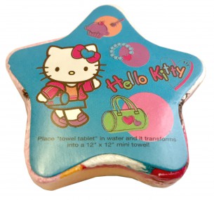 Mini Toalha Mágica Estrela Hello Kitty, 12 x 12 cm