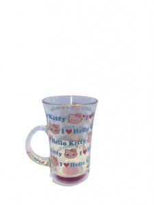 Caneca de Vidro Face Hello Kitty, 12.5 x 9.5 cm, 250 ml, Vidro - Azul