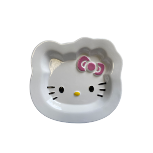 Este prato de cerâmica Face Hello Kitty é uma peça encantadora que vai adicionar um toque adorável à sua mesa. Com o formato da cara da Hello Kitty e detalhes delicados, como seu clássico laço rosa, este prato é perfeito para servir qualquer refeição ou sobremesa com um charme extra.