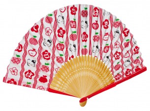 Leque Pattern Japanese Hello Kitty, 21.5 x 5 cm - Vermelho e Branco