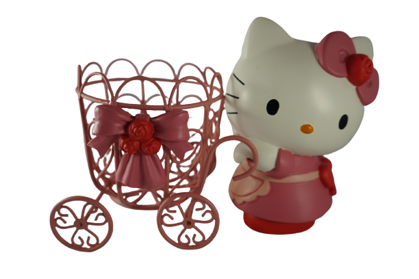 Adicione um toque de charme ao seu espaço com o carrinho com plantas Hello Kitty. Este adorável carrinho em ferro pintado de rosa é perfeito para exibir as suas plantas favoritas de uma maneira única e estilosa. Acompanhado de uma figura removível da Hello Kitty, este carrinho não é apenas funcional, mas também um excelente item decorativo.