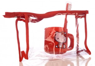 Conjunto de Copo e Escova de Dentes Ribbon Hello Kitty, 21 x 13 cm - Vermelho