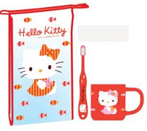 Conjunto de Copo e Escova de Dentes Fish Hello Kitty, 13.2 x 1.5 cm - Vermelho