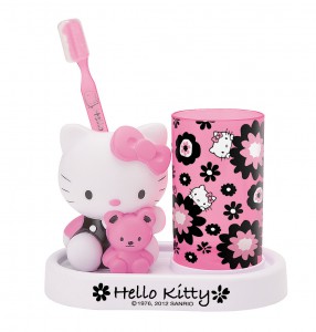 Conjunto Copo e Escova de Dentes Blossom Hello Kitty, 20.3 x 17.9 cm - Preto e Rosa