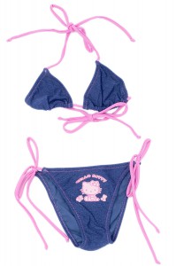 O biquíni Hello Kitty, indicado para crianças dos 5 aos 6 anos, é a escolha perfeita para dias de diversão na praia ou na piscina. De cor azul, com apontamentos em rosa, apresenta um estampado alegre da Hello Kitty na parte inferior, conferindo um toque divertido e encantador ao conjunto.
