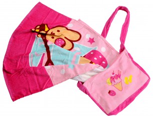 Toalha de Praia com Saco Sundae Hello Kitty, 134 x 76 cm, 100% Algodão - Rosa