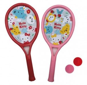 O conjunto de raquetes Hello Kitty é perfeito para momentos de diversão ao ar livre! Com um design vibrante em vermelho e rosa, este conjunto inclui duas raquetes decoradas com a adorável Hello Kitty e os seus amigos, além de duas bolas para garantir partidas animadas.