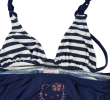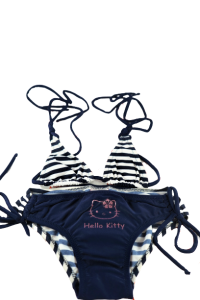 O biquíni Hello Kitty, indicado para crianças dos 3 aos 4 anos, combina conforto e um visual divertido para os dias de verão. De cor azul-marinho, apresenta um alegre padrão às riscas azuis e brancas, com a imagem da Hello Kitty estampada na parte inferior, trazendo um toque de ternura e estilo.