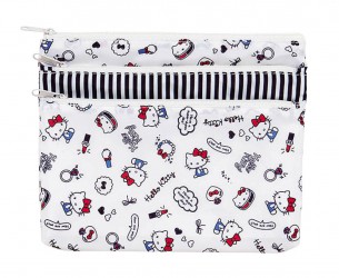 A pochete com 3 fechos Hello Kitty Fashion é um acessório funcional e cheio de estilo, perfeito para manter os seus pertences organizados com um toque divertido. Com um padrão branco decorado com pequenas ilustrações da Hello Kitty e detalhes a azul, esta pochete destaca-se também pelas riscas na zona central, que lhe conferem um visual moderno e original.