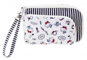 A mini-pochete Hello Kitty Fashion é um acessório prático e cheio de estilo, ideal para transportar pequenos objetos do dia-a-dia com um toque de originalidade. Apresenta um padrão divertido com várias ilustrações da Hello Kitty, combinadas com riscas azuis sobre fundo branco, o que lhe confere um visual moderno e jovem. A alça de pulso a condizer facilita o transporte e oferece maior comodidade.